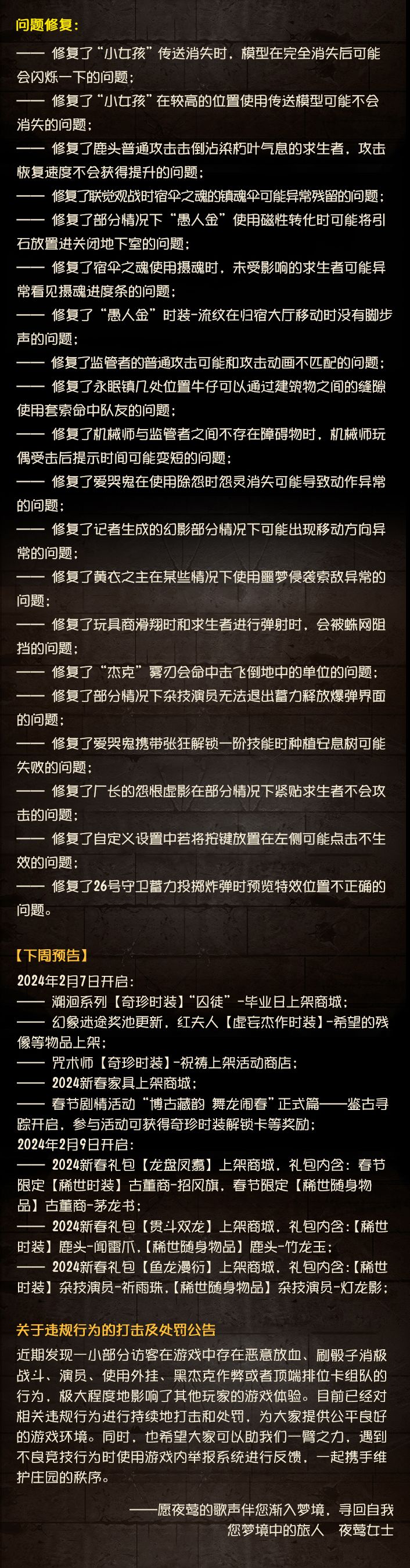 —— 【个性动作】红蝶-致意、【个性动作】调香师-祝福、【个性动作】渔女-致意、【个性动作】宿伞之魂-祝福永久上架商城,特惠售价98回声;其中,在2023最佳演绎评比中曾给渔女投票的访客可通过邮件领取对应动作的6折打折卡;