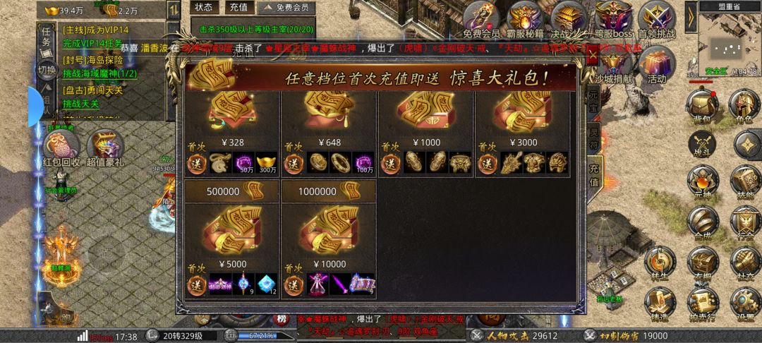 5.所有功能都要钱,例如自动回收(30元赞助礼包内开通),自动分解(98元赞助礼包内开通),挂机功能,一块钱一天,开了挂机功能没有自动分解,背包大约两到三个小时满了,自动回城