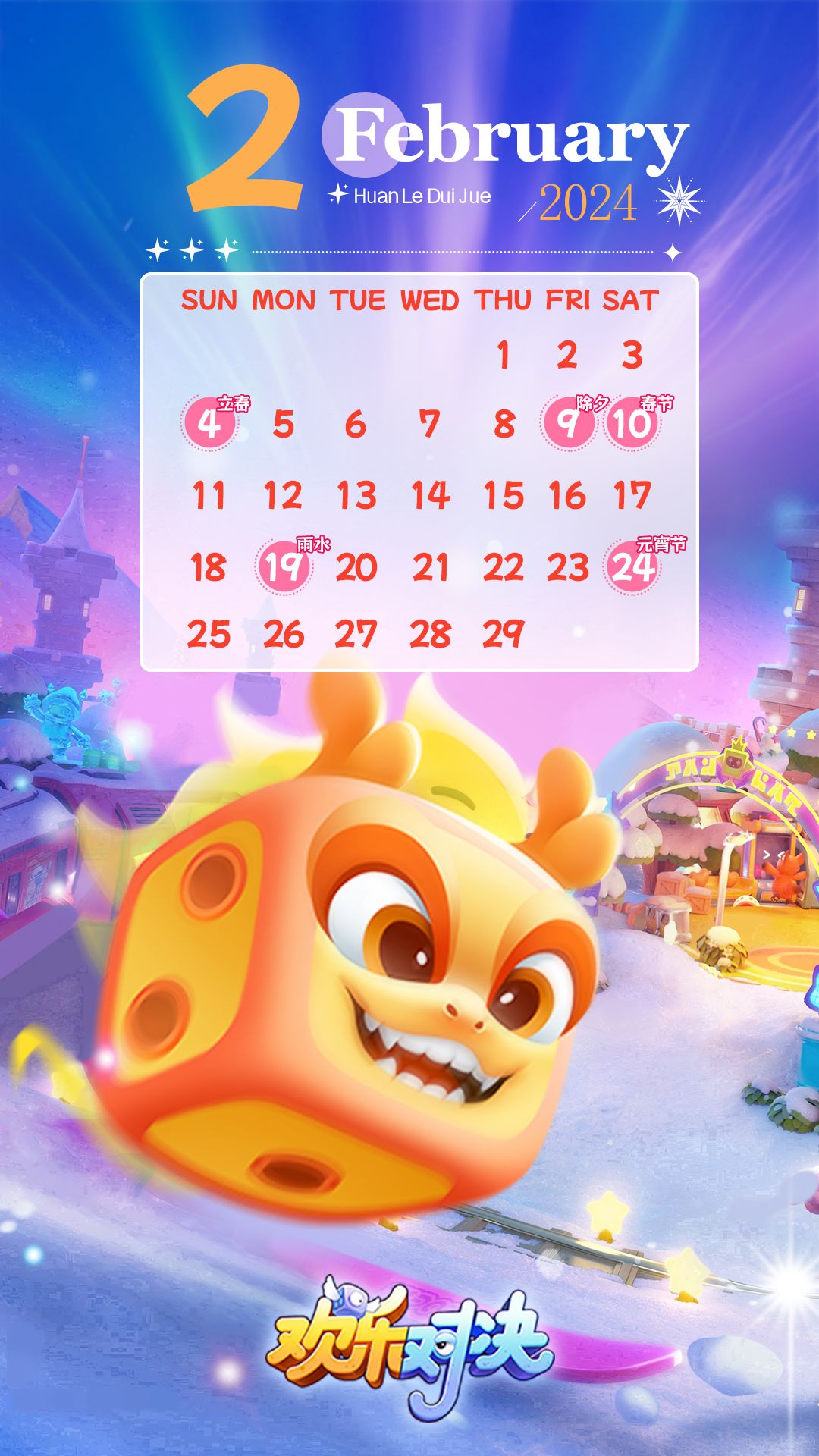 《欢乐对决》2月日历如期而至,让一让,让新鲜的壁纸先端上来~
