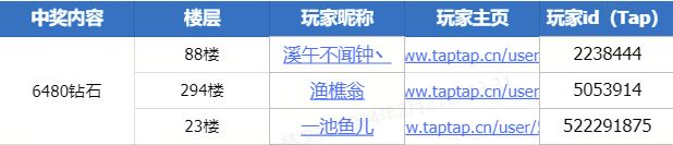 重要信息:以上中奖的小伙伴,请您添加老金QQ号 3004480732,添加好友留言请附上TapTap ID,配合我们填写相关信息,以便于我们为您发奖捏~!注意注意:请一定认准我们的官方账号啊!一定要保护个人信息的安全~