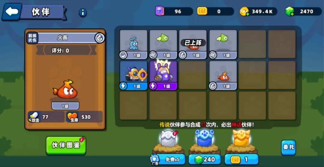 伙伴通过相同品质进行合成提升自己的品质,拥有不同的定位、品质、元素、天赋,需要选择与自己英雄阵容流派搭配更适配的伙伴,并进行悉心培养,方可发挥伙伴最强大的战斗力!!