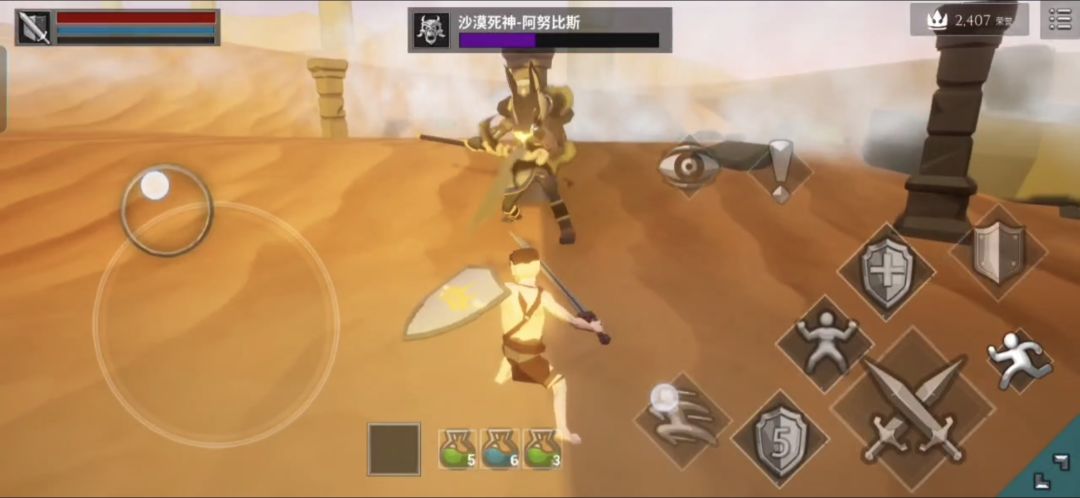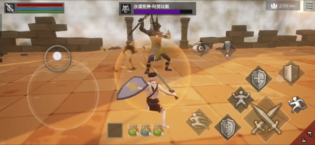 普通土弹(弹反成功后翻滚贴近阿努比斯可触发处决,也可把握节奏把阿努比斯的法术反弹回去并对其造成伤害)