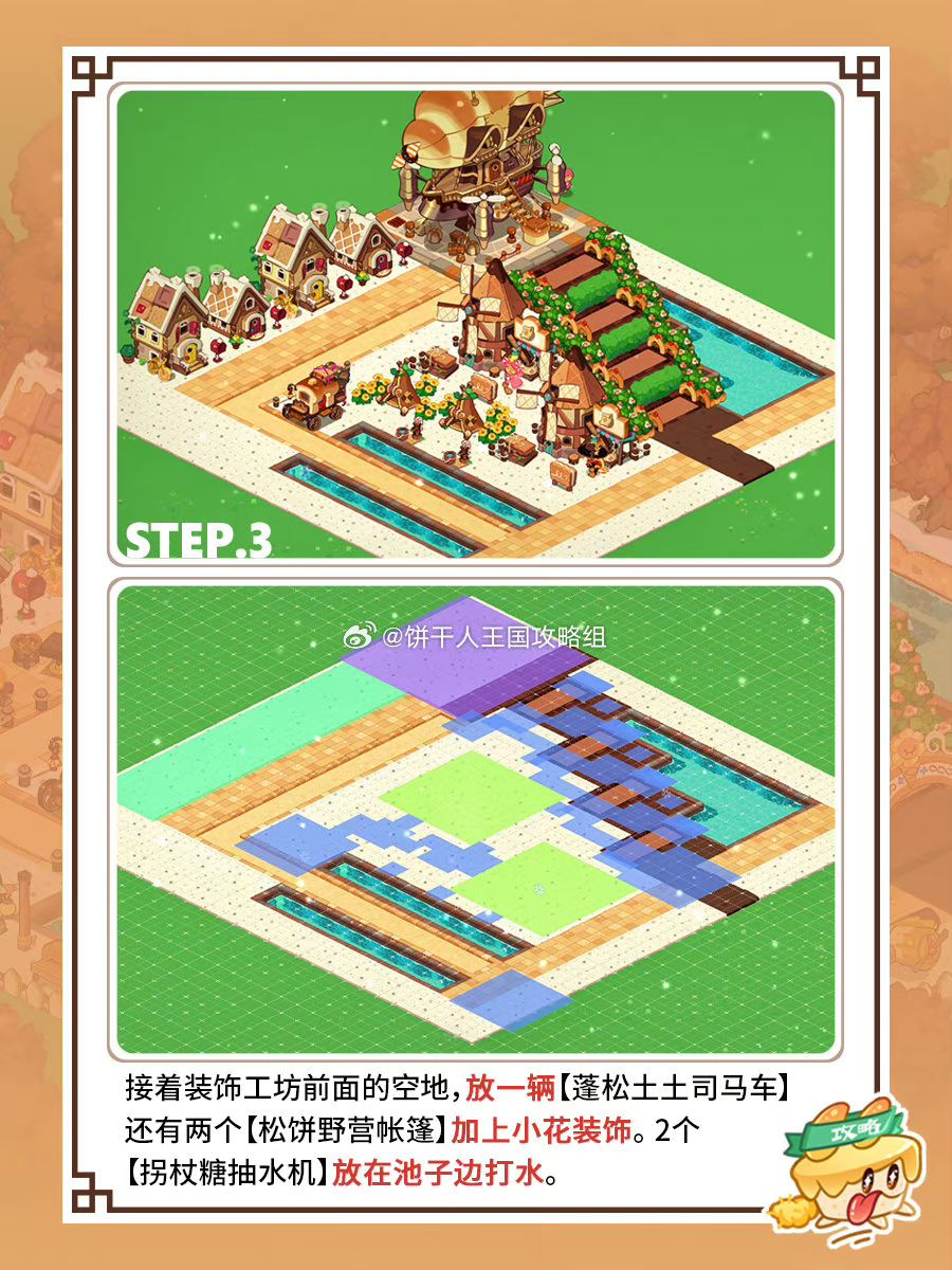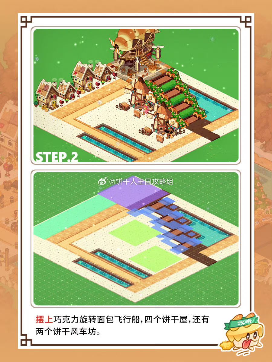 转动的饼干风车坊和巧克力旋转面包飞行船,充满着活力与饼的香甜气息,整个暖棕色调很有落日余晖的氛围~