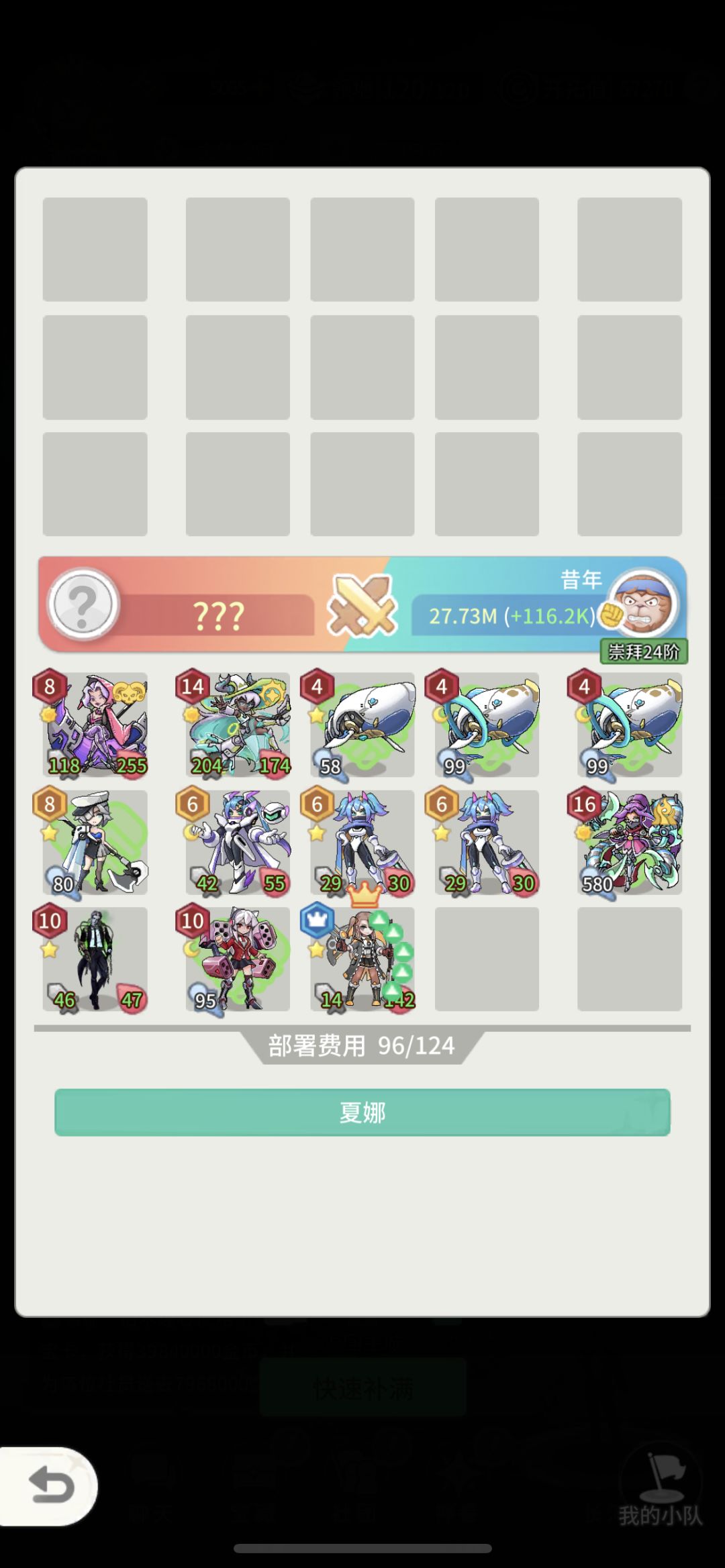 但是,夏娜在打内战的时候,双方都是夏娜,我们该怎么办呢?首先我的建议是最好不要在结算前成为榜一(这次其实是失误了,在调阵容的时候不小心点了攻打,把之前的榜一打下来了),尽量在最后一分钟去偷(2分钟的战斗时长,开三倍速就是40秒),因为你偷得早了,别人可能偷回来或者被别人偷掉,所以我们只有一次机会,一定要仔细观察榜一的阵容。