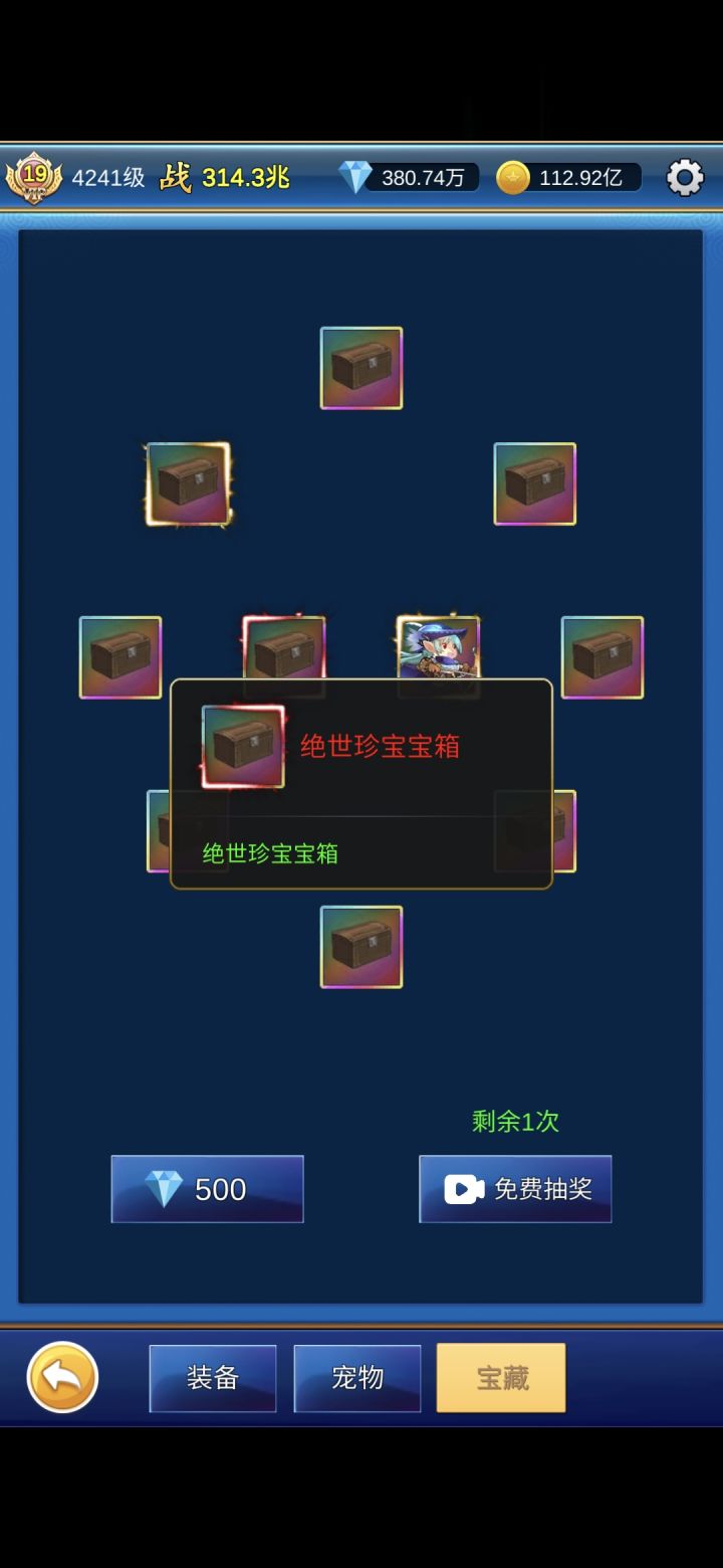 最后7个绝世抽不到,只能从随机宝箱中开出,周宝箱抽取到的自选宝箱都选不到,只能拼RP!
