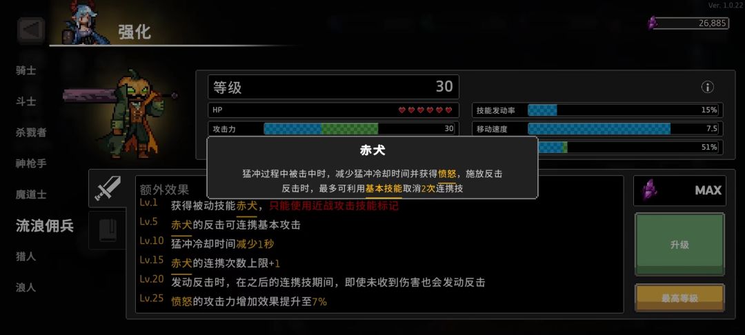 10级和15级很好理解,需要说明的是,连携次数在20级之前指的是连续受到攻击可以反击的次数,这会使得角色极难使用,所以20级是角色第一次质变,论坛里为什么有的朋友不能连续使用反击,决定性的地方就在20级的被动上,它使得反击在第一次成功后即可通过点击冲刺强行使用反击,每一次冲刺后都可以衔接一次普攻,且中途仍有反击判定。