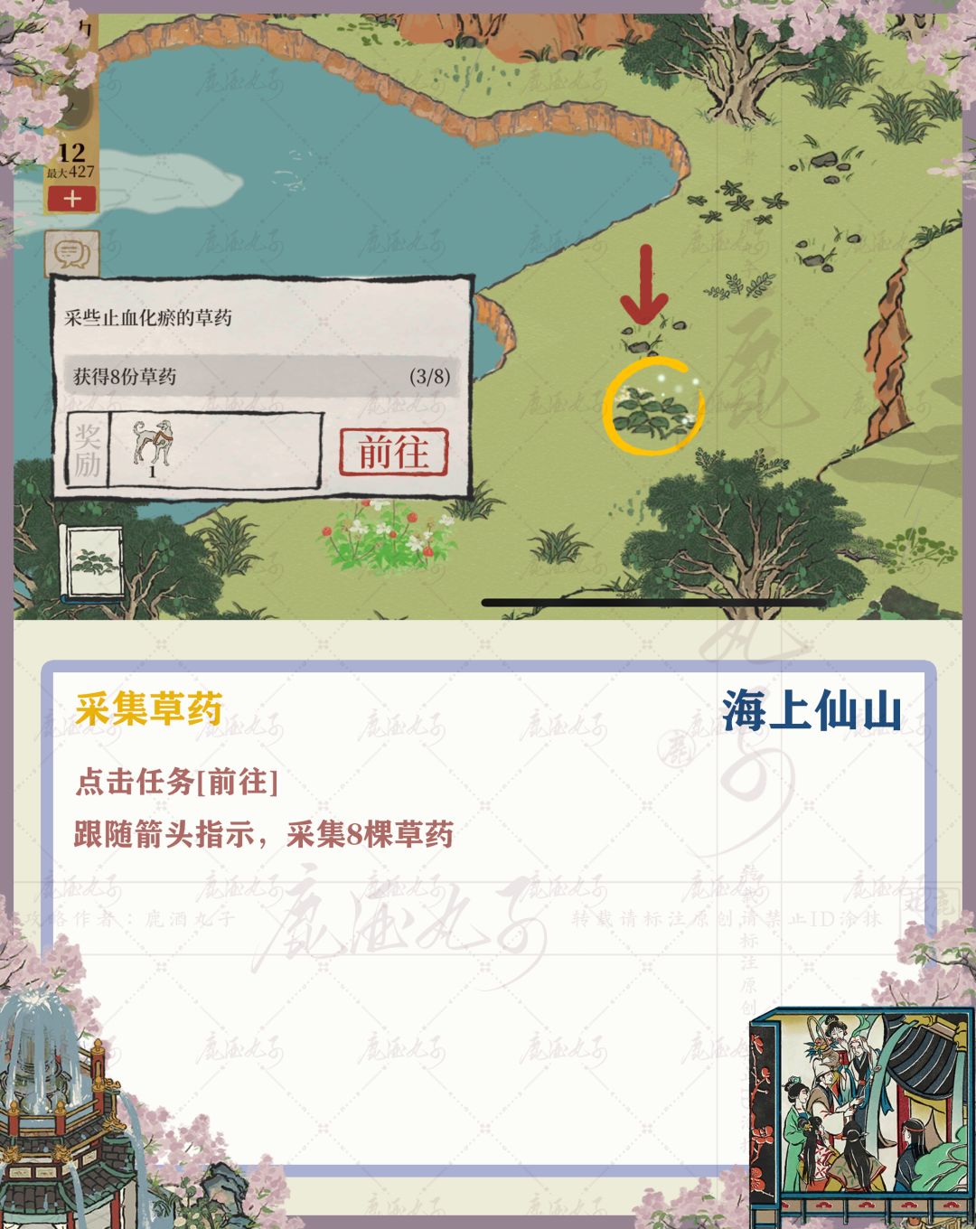 🌸点击任务[前往],跟随箭头指示采集