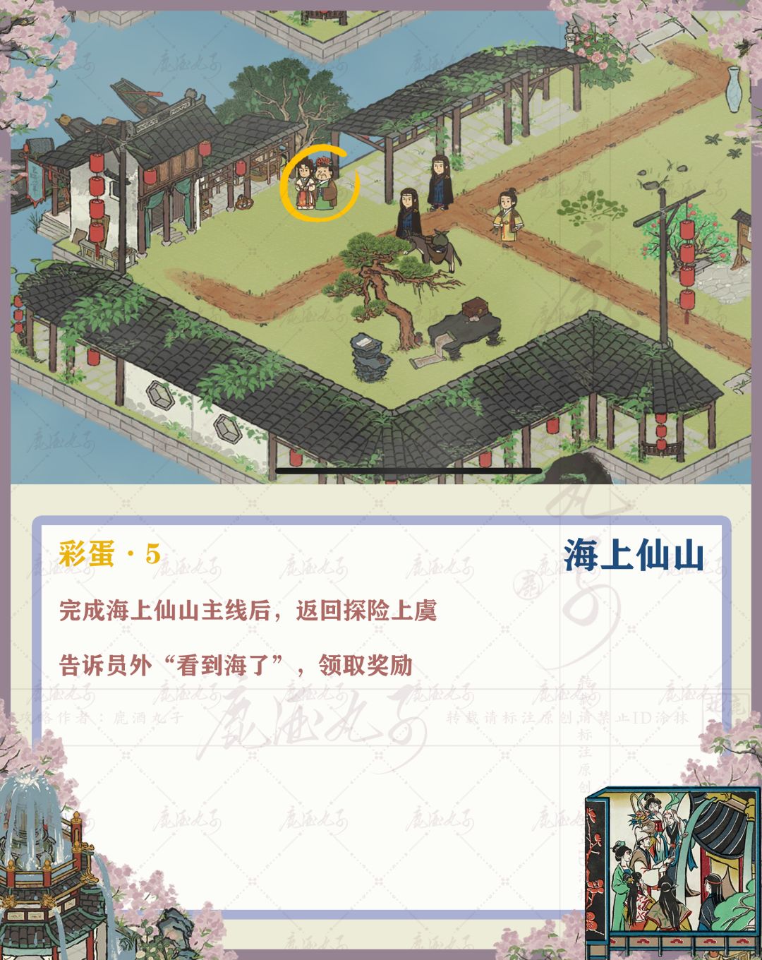 🌸完成海上仙山主线后,返回探险上虞,告诉员外“看到海了”,领取奖励