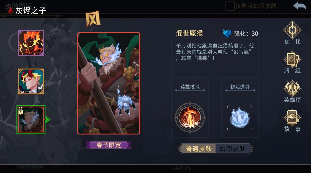 位置:图鉴-皮肤图鉴-英雄灰烬之子皮肤“混世魔猴”立绘正上方