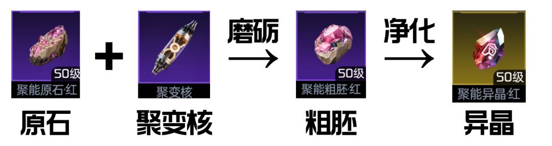 原石*1+聚变核*1→粗胚(与原石颜色对应)