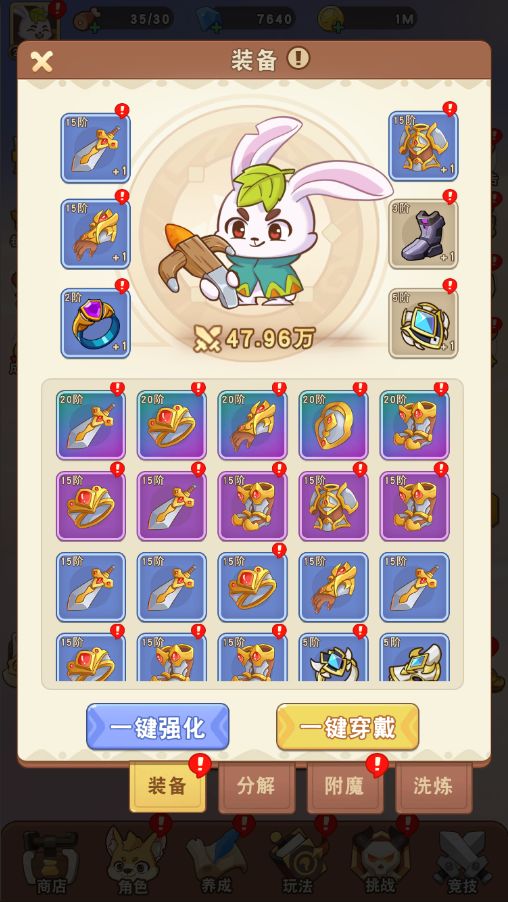 装备是我们提升战力最重要的手段之一,可以大幅度的提升战斗属性,强大的装备可以铸造你的无敌之路!针对不同部位的装备,还可以消耗特定的强化石去提升装备的基本属性,除此外,还有分解和附魔等功能可以帮助打造心仪的神器哦;