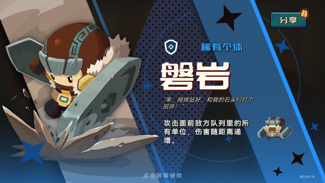 磐岩苏醒于荒漠,身边只有无尽的砂石与尘土。它披上厚重的岩石,升起板结的大地,抵御狂风,遮蔽烈阳。它对抗荒野,乐在其中。现在,磐岩带着它的砂石朋友们来到砰砰村,将带来比荒漠更加狂野的战斗风暴。相信我,你不会想站它对面的。
