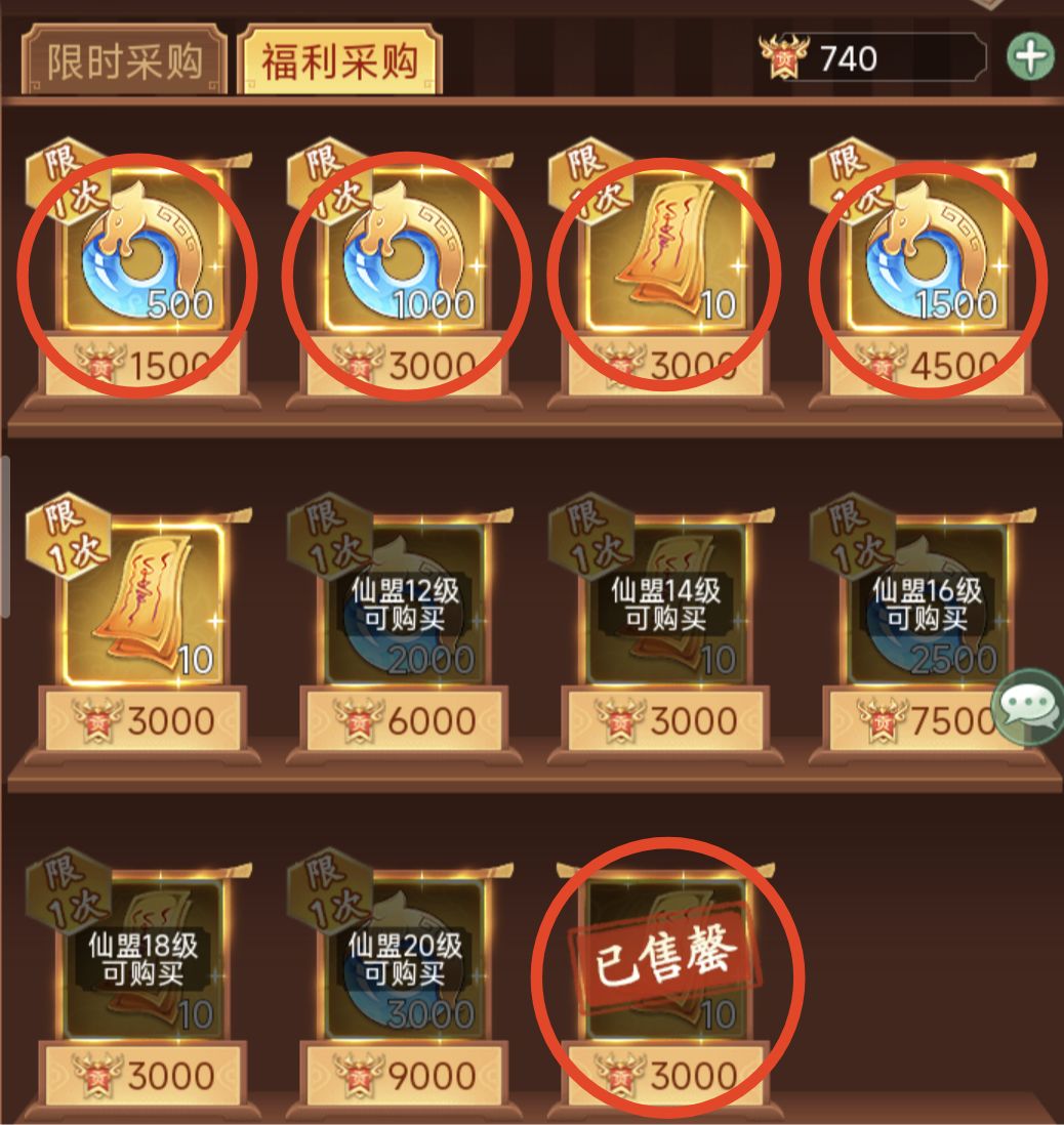② 购买仙盟商店-福利采购内的灵玉和通灵符