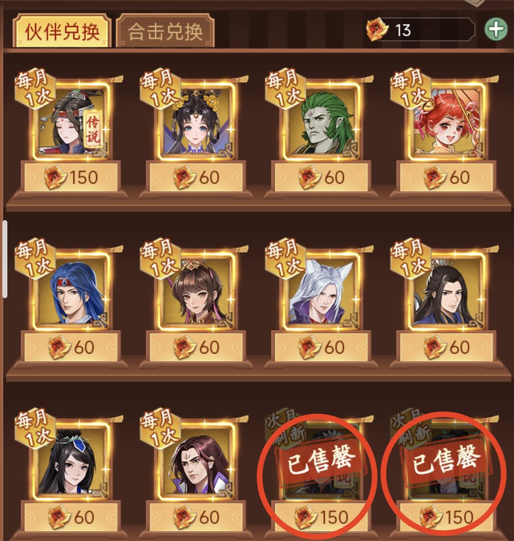 ③ 随机传说伙伴碎片(适合脸白的朋友们,1500十个碎片,100个碎片可合成一个随机伙伴(剑圣/紫萱/梦璃/巫后/沈欺霜/拜月,1.5w可得一个传说,比红尘保底60划算,欧皇专买)