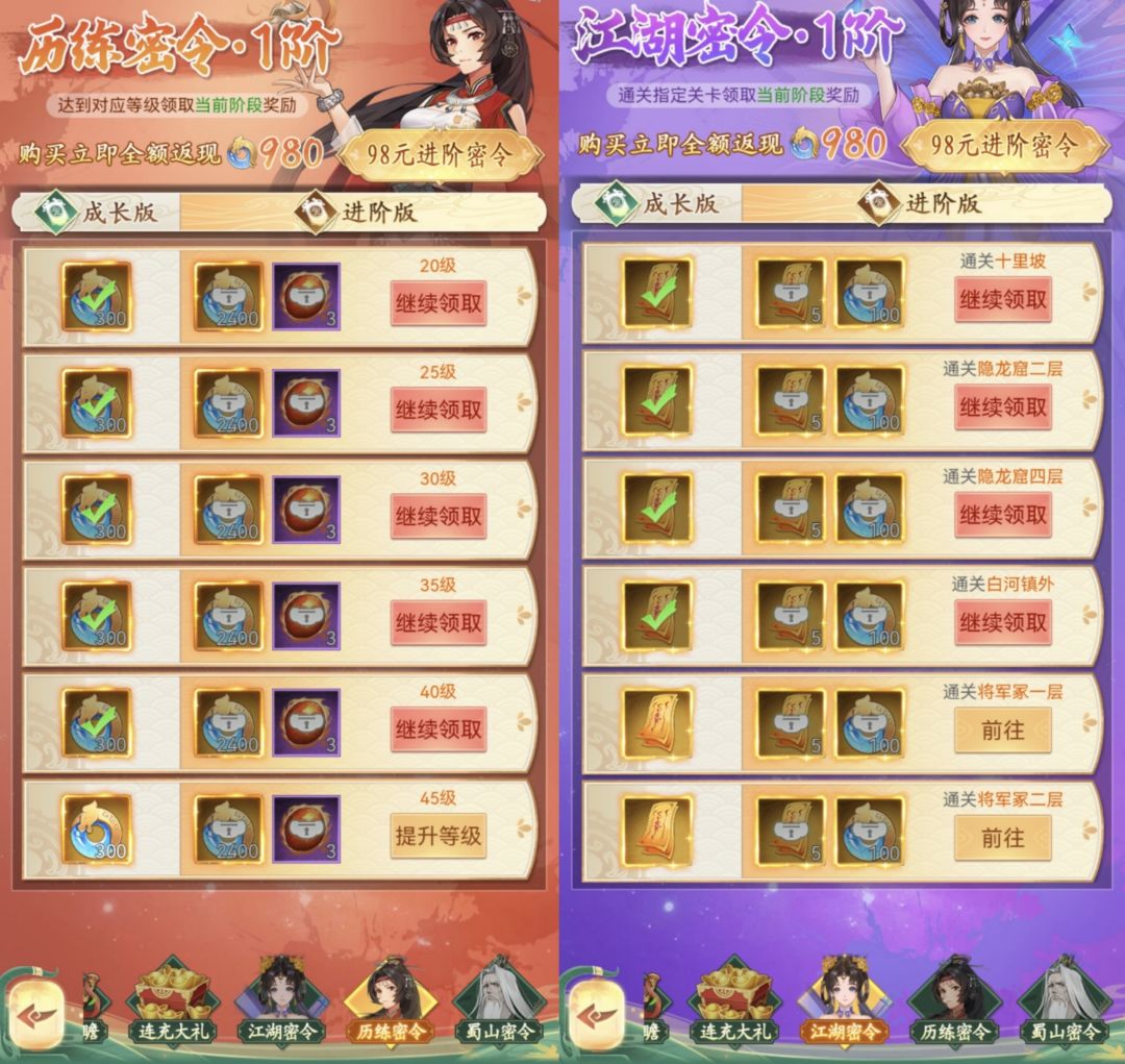 推荐理由:历练秘境可获得1.5w灵玉,江湖密令可获得50张通灵符和1800灵玉,性价比高,推荐购买