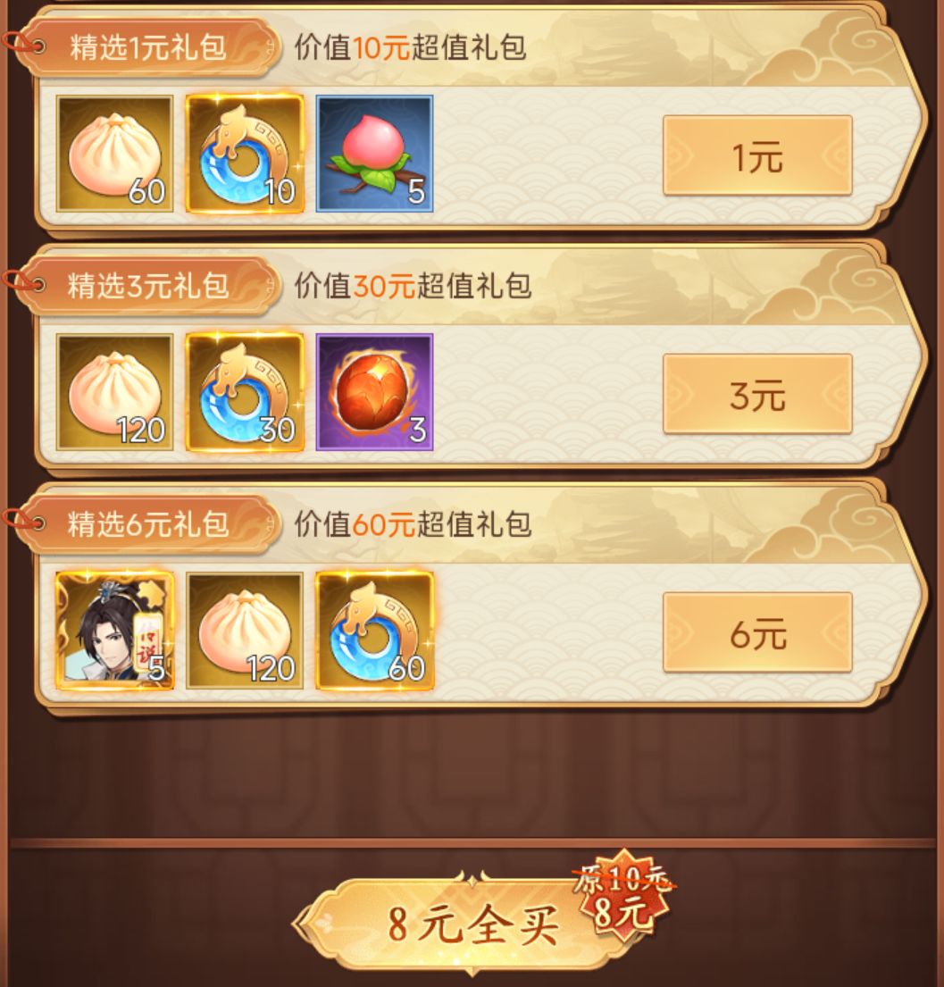 ①8元大侠礼包(体力包子礼包)