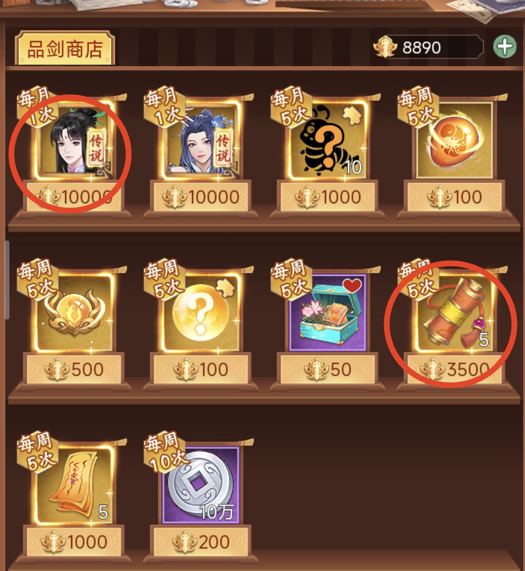 ① 通灵符(每周可兑换10张,通灵符的性价比无论前期还是后期都很不错的,必买)