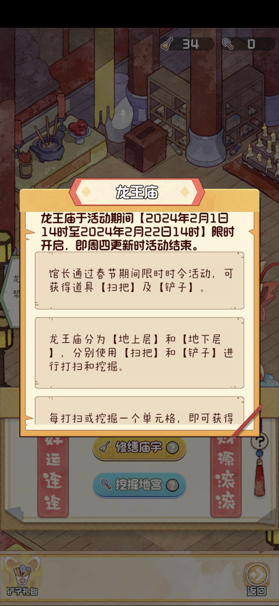 1.每日点击招揽游客有概率给扫把。
