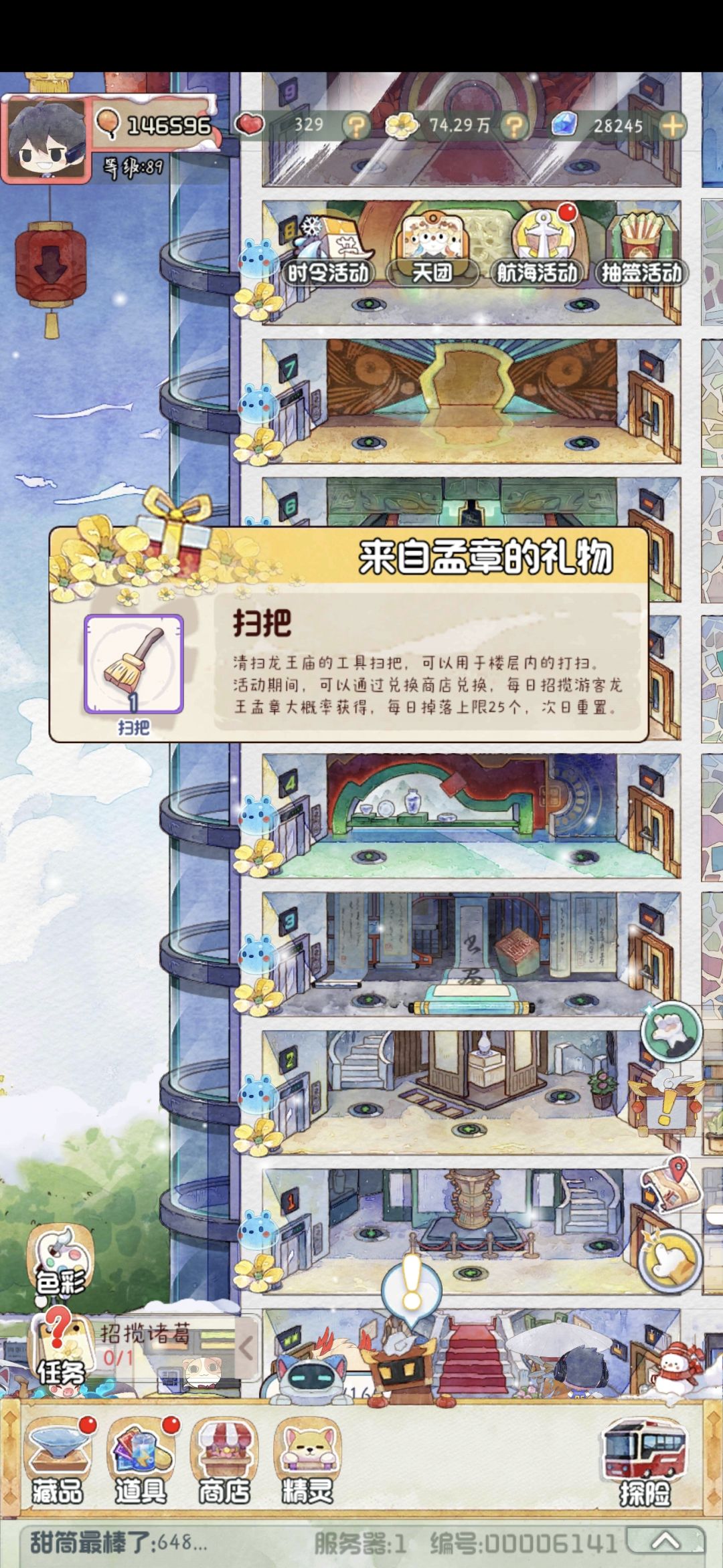 但是只有招揽到这个特殊客人孟章(以下简称小孟)才会给。改良后每天上限50个。次日重置。这次活动共15天,也就是15x50=750个扫把。
