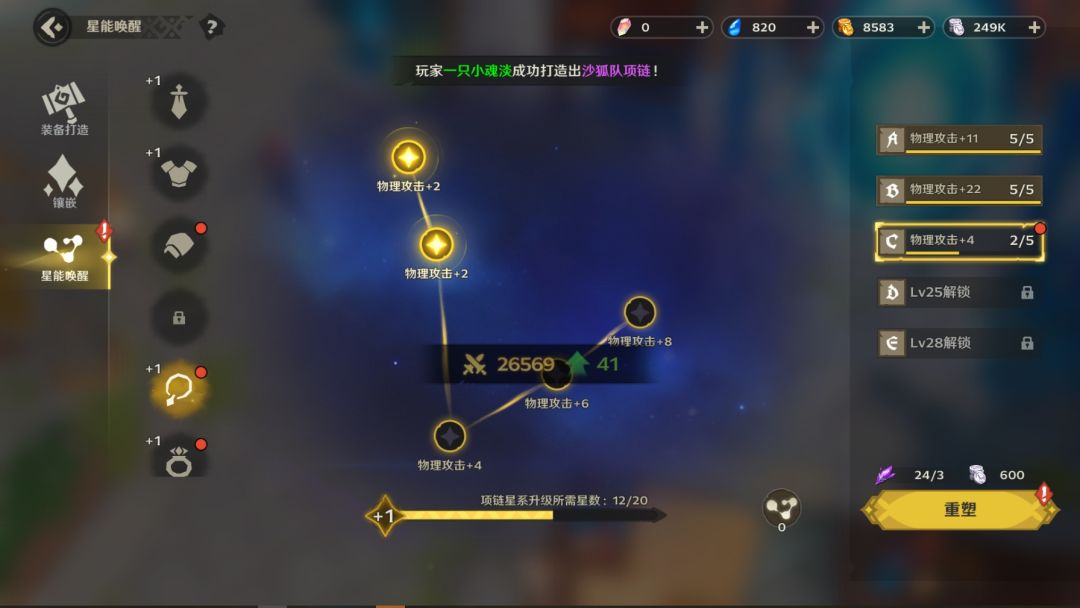 - 当获得足够的材料后即可对对应位置的装备位置进行星能唤醒,进一步提升装备的属性值,装备星级的属性只和部位有关