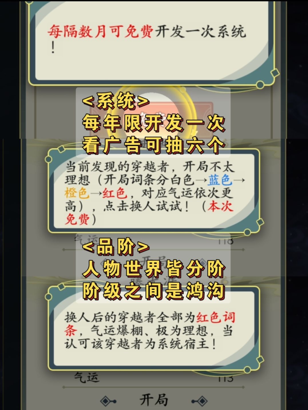 游戏名:《穿越者系统:模拟》一款披着爽文皮的文字养成类游戏
