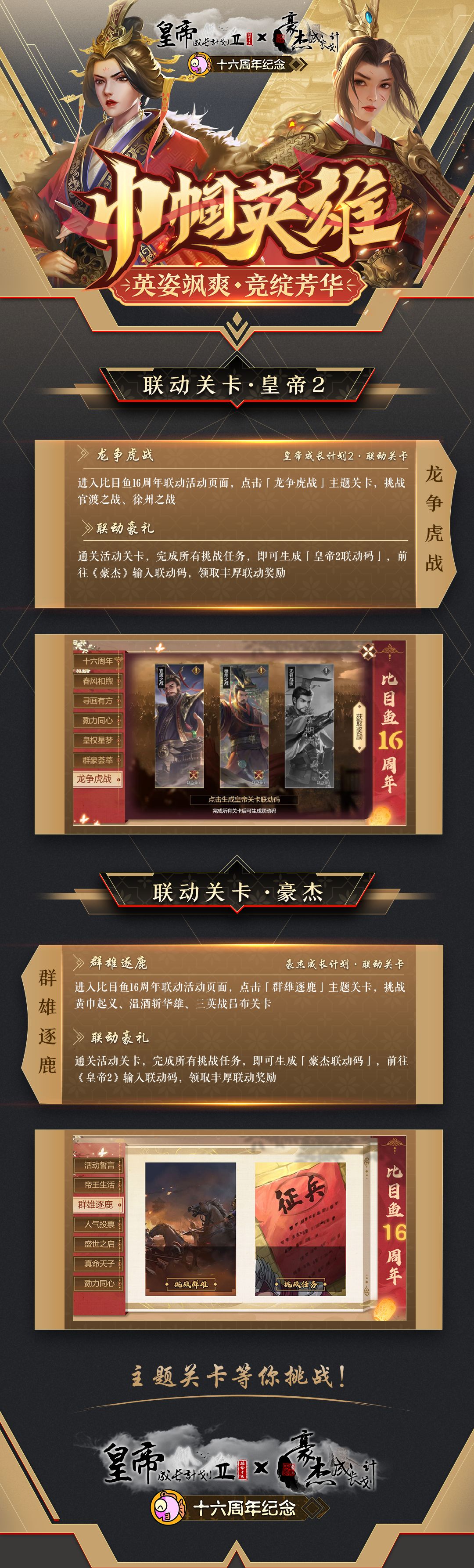 全新联动主题关卡「皇帝2·龙争虎战」、「豪杰·群雄逐鹿」上线!
