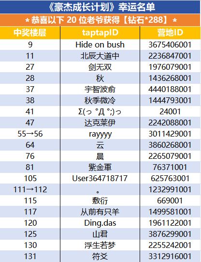 ✦抽取20位幸运老爷:钻石*288