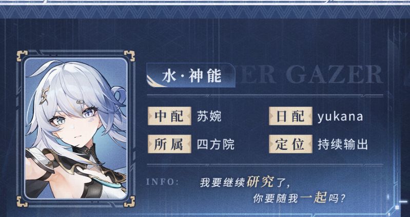 ① 角色定位:天垣神系、水属性、神能型、远程持续输出角色;
