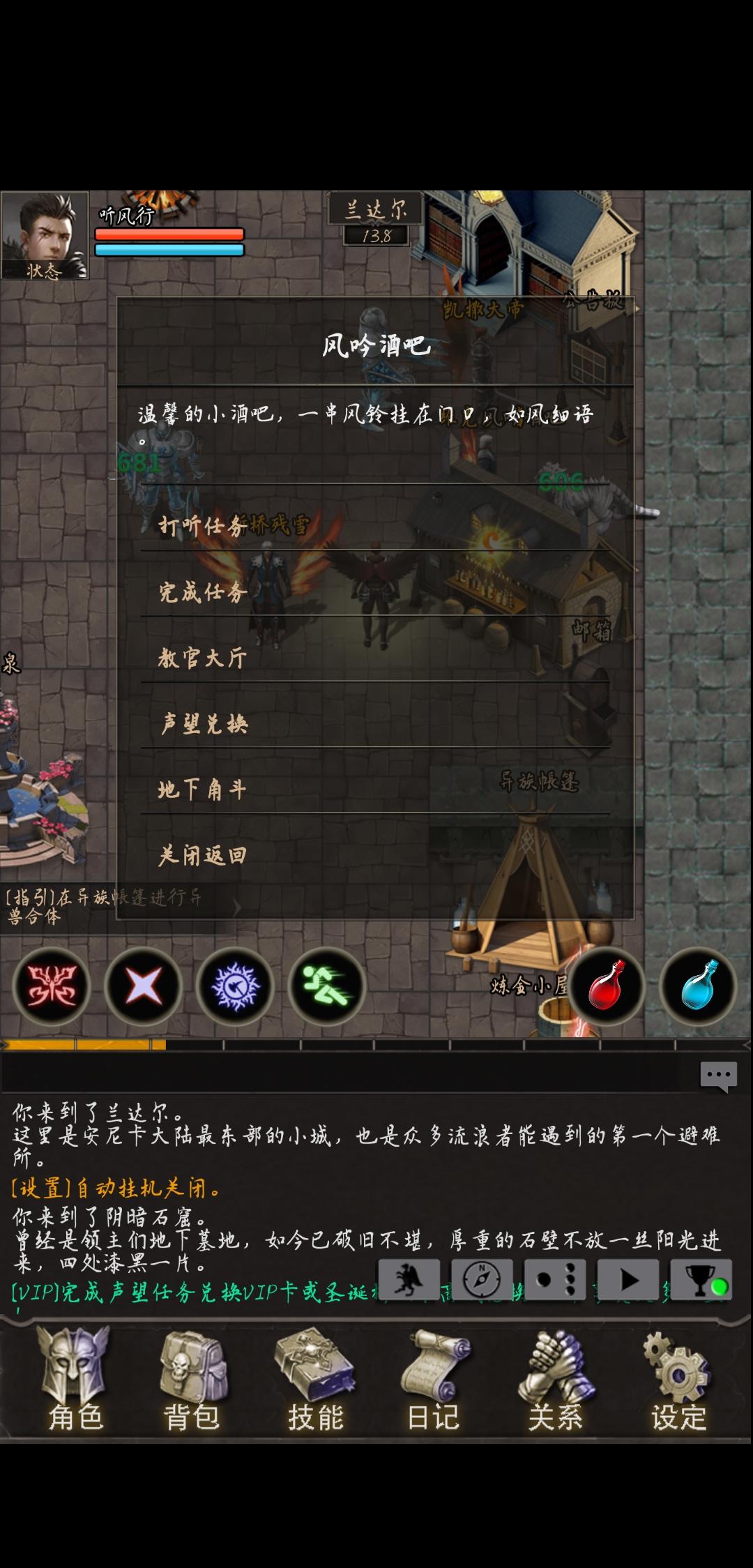 的第一座主城---兰达尔城,就跟上面的图一样。在左下角有着新手教学。你可以先跟着主线任务走。