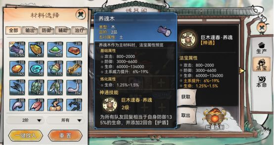 养魂木:可以给队友回复生命,高昂的护盾值,并且还可以使自己再增加两回合护魂,并且只需要500蓄力值,基本上两回合就能放出来了。其他的一些辅助法宝也是不错的,可以看情况来搭配。