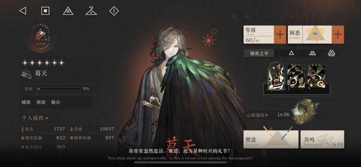 3、洞悉骨相乱挂无排重机制,覆盖堪忧,且面对多回合多轮次敌人时表现乏力。(具体表现为:葛天开术阵期间是它最佳挂机输出节点,但这会同时也是主C的爆发时间,主C爆发把小怪都送走或打邮报导致boss切血条,小怪重新刷,骨相就清0。要么葛天出卡重新挂骨相,要么大幅损失诫的挂机输出。矛盾点在于葛天优势是对群场景,但多数对群实战却也难发挥他的最大输出,除非你的主C特别不给力...)