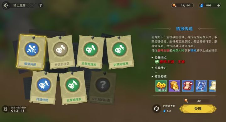 但是注意这个任务是有品质区分的,右下角可以刷新品质,紫色最高,但是相对也比较难完成。