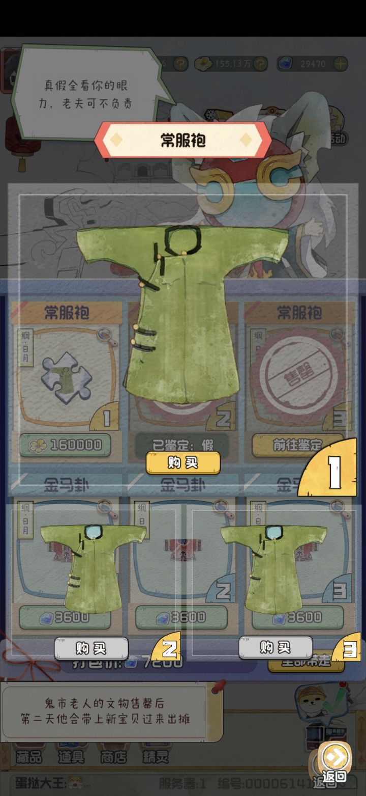 常服袍:真品领子里面看见的内衬是绿色,左下有两个搭扣。