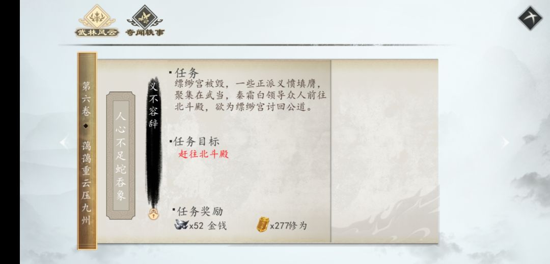 主线做到圣火教帮景一方,缥缈宫被毁,叫去北斗殴讨回公道。结果进了铁剑山,少林寺门口触发剧情,帮了心救阿木,战斗过程中卡死。