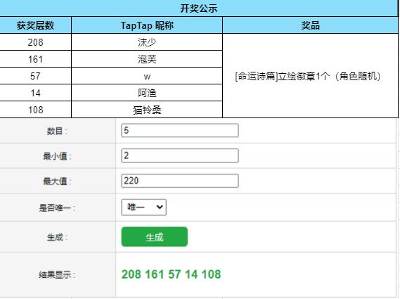 根据开奖结果显示,恭喜以下幸运的玩家们获得奖品: