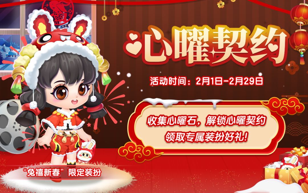 二月心曜契约装扮上架“兔禧新春”装扮,上身喜庆氛围满满~一起开启福气满满的一年吧!