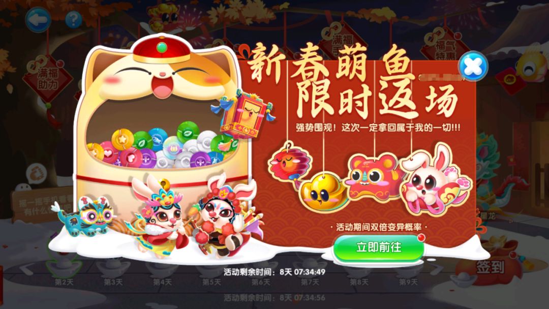超多新春系列萌鱼一同返场齐拜年,活动期间还享双倍变异概率哦~