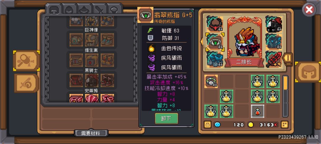 第三种石头火山熔铸石是用来洗词条的,来源不氪金的话基本就是爬塔才能得了,推图很少掉我感觉。对于飞盾流的装备大家就看上边大佬的帖子吧,讲的非常清楚了,我就主要讲一下旋风斩。