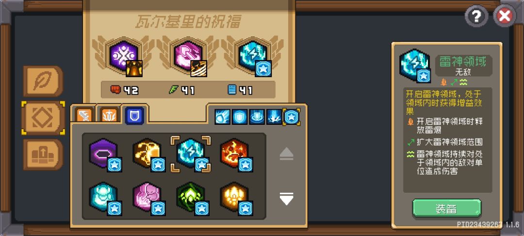 我选的是这三个。雷电领域我建议放在无敌上,CD差不多,我觉得很匹配,至于巨力守护,其实我觉得放啥都行,仁者见仁智者见智吧。