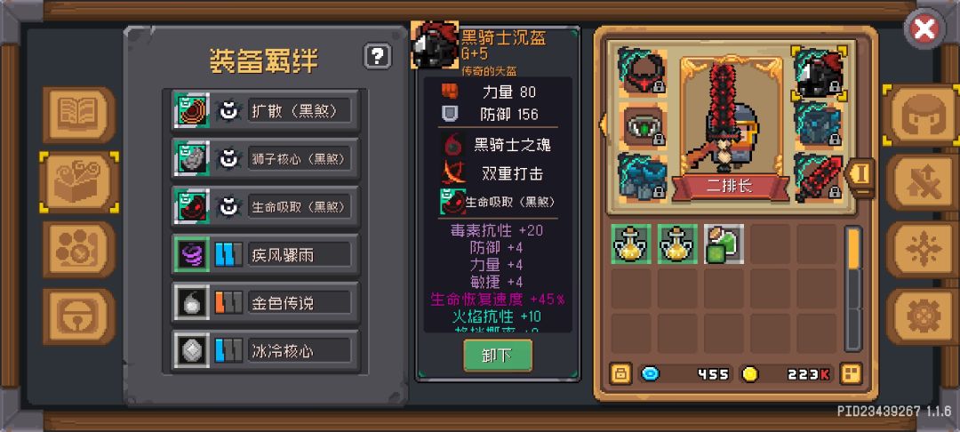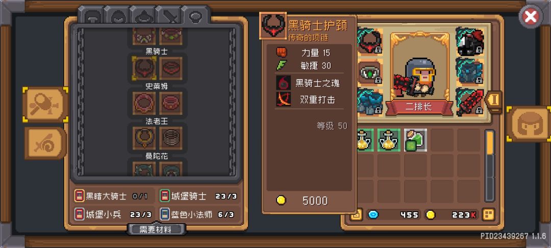 大剑是必备的,有30物理加成,再加上项链和头盔(至于为什么都推荐头盔说实话我不太清楚,我觉得三件套能凑齐双重打击就行了,至于选项链是因为游戏内的地图羁绊机制导致饰品羁绊是随机的,而BOSS装备的前两条羁绊是固定的,这个待会会说到)凑齐三黑骑士之魂和三双重打击,这两个羁绊是黑骑士三件套固定的,不用担心。