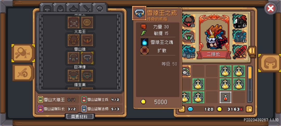 之后再用两件水晶蟹或者雪猿王凑三扩散就行了。我推荐水晶蟹,因为加力量,雪猿王是加敏捷。对应地图分别为水晶洞窟和严寒雪山。