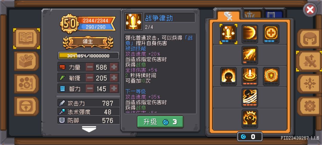 普通属性点全力量,加血加攻击,我们不需要命中,个人感觉敏捷收益比较低。