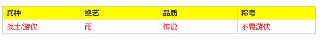 - 雨绝艺游侠阵容,可以获得全部绝艺和兵种专精属性加成。