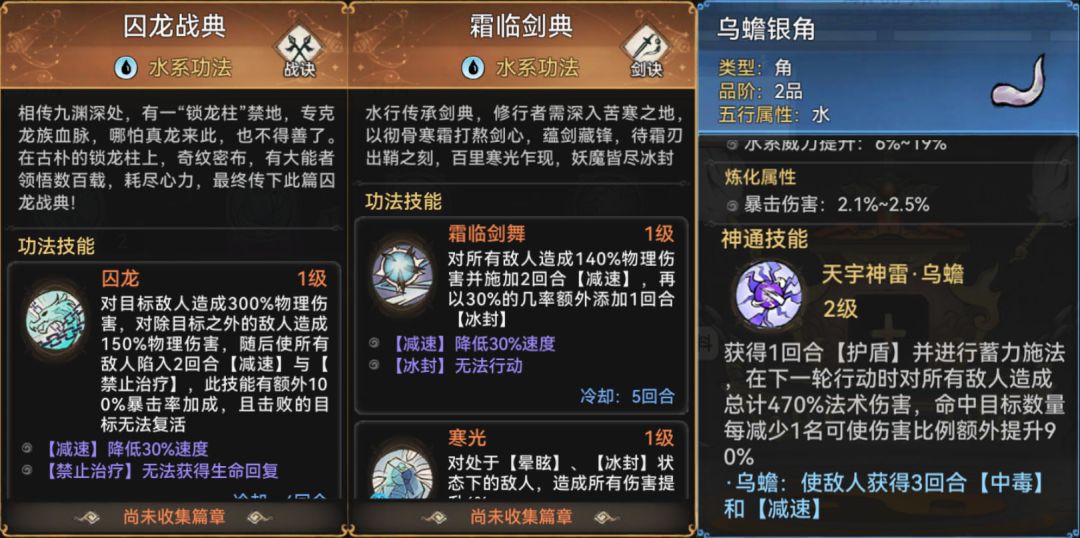 和火剑(火系剑修)一样,水剑自然也是天水灵根最好。虽然水剑的爆发能力稍逊于火剑,但具备了更多控制能力。功法上可以选择囚龙战典+霜临剑典,霜临剑典可以通过每周的天道传书概率获得,升级相对容易。在pve环境中霜临剑典的表现尤为出色,如果是pvp的话也可以换成听潮剑诀。对于水剑来说天命最好是有养剑、剑意,法宝首选乌蟾银角,或者蚀骨毒牙也可以。