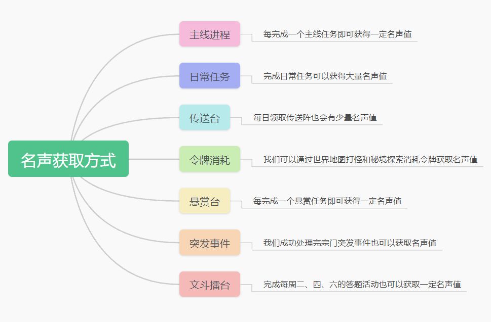 这些名声值获取方式中我们需要额外注意令牌消耗和悬赏台这两个方式。