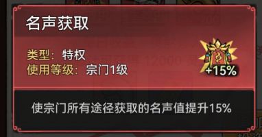 以上方式获取名声值都是一定数量,其实名声值获取还具有百分比加成,这才是我们宗门快速升级的关键月卡,具有15%的加成,这是我们的大头所在,没有月卡宗门等级差距会越来越明显。