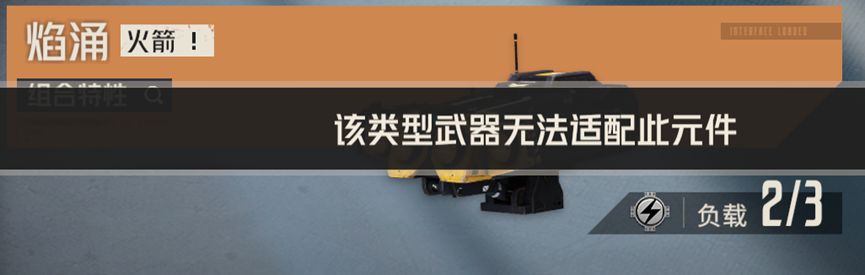 部分元件本身带有限制条件,部分武器无法装配。在此简单举个例子: