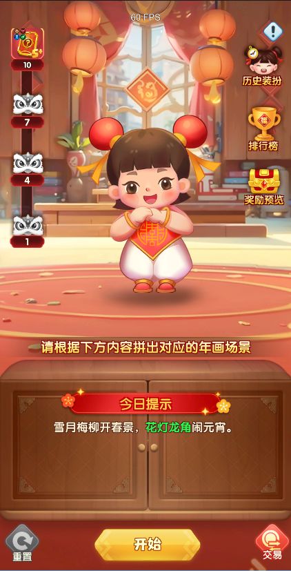 2. 拼年画:活动期间,根据任务提示,拼出对应的娃娃、配饰、物品、场景等即可获得高分以及奖励。