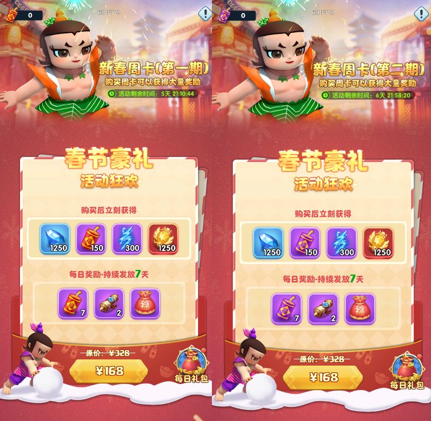 5. 新春周卡:活动期间,开放新春周卡购买,购买周卡可以获得大量奖励。