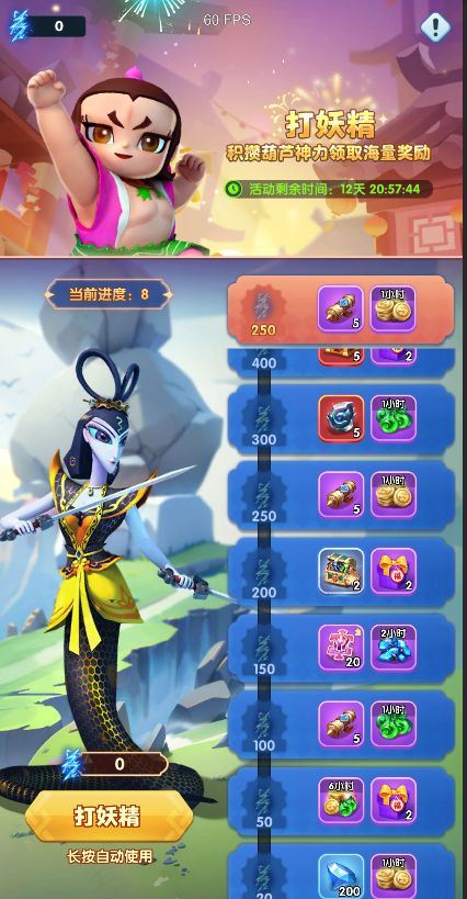 15. 打妖精:活动期间使用葫芦神力可增加【打妖精】的进度,完成对应阶段时可以获得阶段奖励,达到最高进度后,可以增加葫闹好礼的进度。